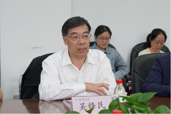 吴锋民致辞,他对各位专家从百忙之中抽出时间给物理学科把脉表示热烈欢迎和衷心感谢,提出三点希望:一是对物理学硕士点核验多提意见和建议,二是对物理学申报博士点多提宝贵意见,三是对物理学学科下一步发展指明道路。