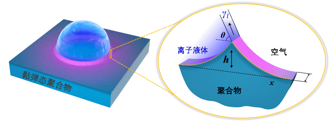 图1 液滴表面张力诱导聚合物表面发生形变的示意图