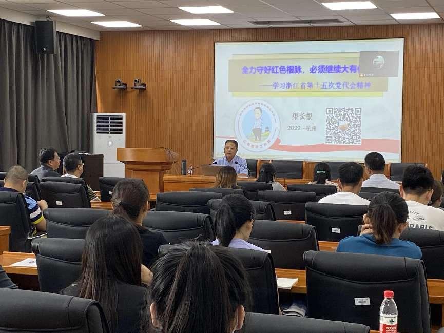 会上,马克思主义公司渠长根教授应邀作题为《全力守好红色根脉,必须继续大有作为——学习浙江省第十五次党代会精神》的专题报告。他从红色文化入手,系统地阐述了红色根脉的内涵、表现,并结合公司实际对如何进一步做好红色文化活动提出了具体的建议。报告主题突出、观点深刻、内容丰富、事例鲜活,对全体教职工学习领会浙江省第十五次党代会精神具有重要的指导意义。