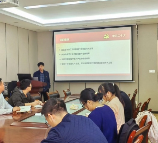 10月19日,物理学系教工党支部在3S408会议室专题学习党的二十大精神。支部书记刘爱萍主持会议。会议强调,学习宣传贯彻党的二十大精神是支部当前和今后一个时期的首要政治任务,各位党员教师要充分认识大会的重大意义和丰富内涵,深刻领悟“两个确立”的决定性意义,深刻领悟“三个务必”的重要要求,牢牢把握过去5年工作和新时代10年伟大变革的重大意义,牢牢把握习近平新时代中国特色社会主义思想的世界观和方法论,牢牢把握以中国式现代化推进中华民族伟大复兴的使命任务,牢牢把握以伟大自我革命引领伟大社会革命的重要要求,牢牢把握团结奋斗的时代要求,切实把思想和行动统一到党的二十大精神上来。