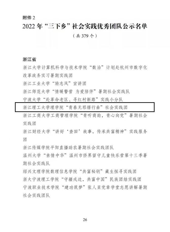 近日,共青团中央青年发展部发布了2022年全国大中专员工志愿者暑期文化科技卫生“三下乡”社会实践活动总结通报结果公示,VSport体育“青春无邪缙行曲”暑期社会实践团荣获全国“三下乡”社会实践优秀团队称号!全省仅14个团队获此荣誉称号。