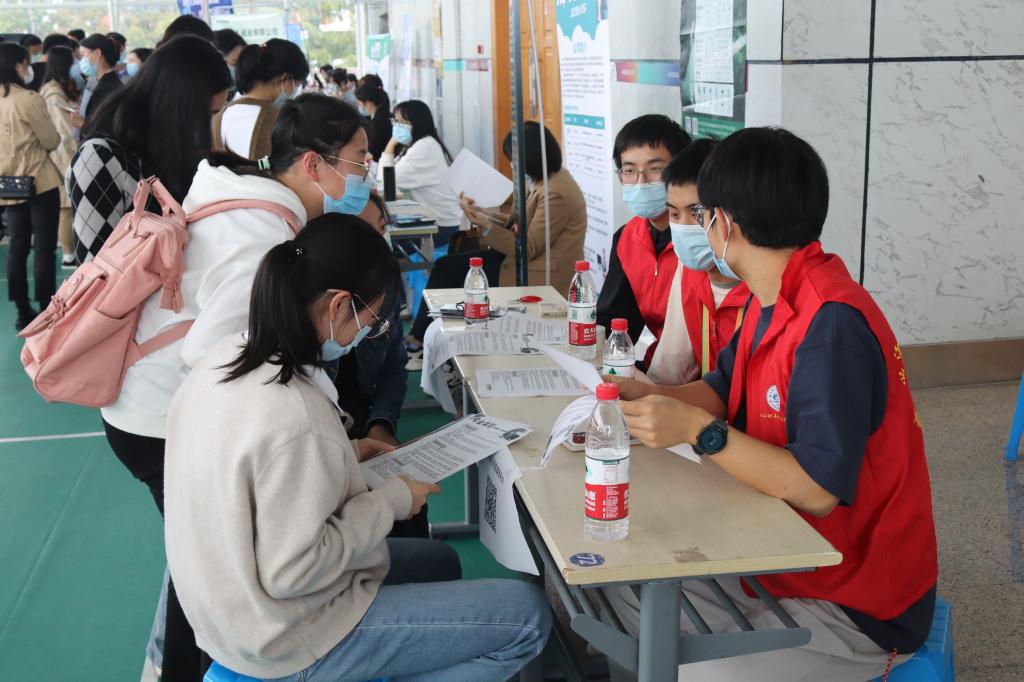 招聘会现场气氛热烈,毕业生们根据疫情防控要求分批前往会场,不时驻足感兴趣的企业展位,积极与招聘人员交流,了解岗位招聘要求、企业培养规划和福利待遇等内容,部分毕业生在招聘会现场与用人单位达成了初步意向。