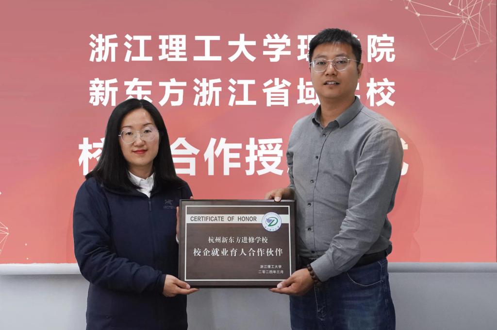 4月8日,为深化校企合作,共同探索校企协同育人新机制,充分发挥双方资源优势,实现产教深度融合。公司党委副书记张孝凤一行赴浙江新东方培训有限公司调研座谈,开展“访企拓岗促就业”活动,并举行校企合作授牌仪式。浙江新东方培训有限公司人力资源部总监助理张明亮、人力资源部招聘经理蒋川等企业管理人员热情接待。