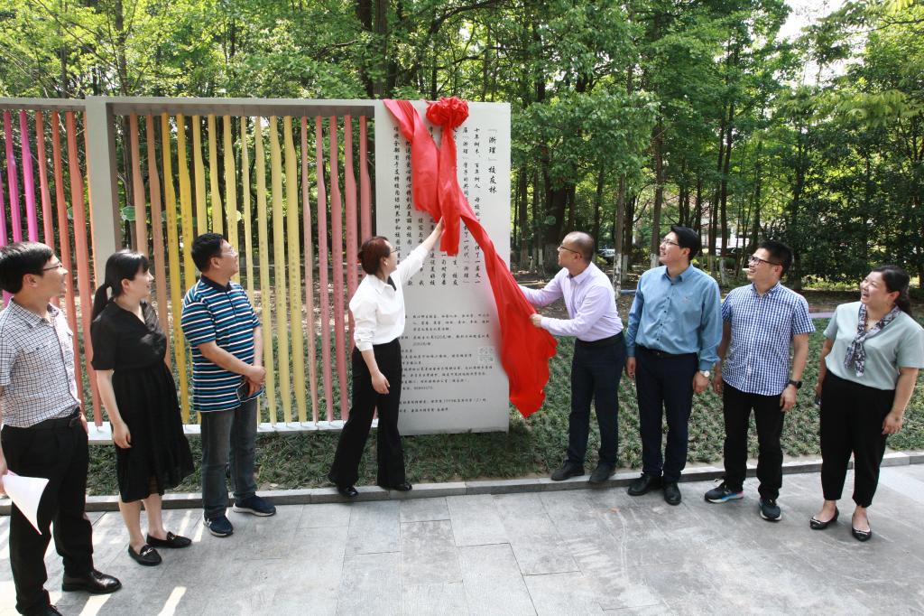 6月14日下午,VSport体育“员工林”文化景观揭牌仪式在15号楼前员工林举行。公司党委副书记姚珺、1999级应用化学2班员工代表鲍玥裕共同为“员工林”文化景观揭牌。