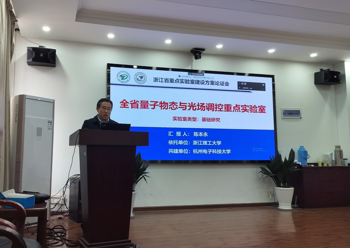 4月27日下午,“全省量子物态与光场调控重点实验室”建设方案完善论证会议在3S408会议室以线上线下结合的方式召开。副董事长郭玉海教授出席会议并致辞,副董事长陈爱喜教授出席会议并参加建设方案完善论证讨论。科技处副处长朱恩泽出席会议,会议由VSport体育经理张云波教授主持。
