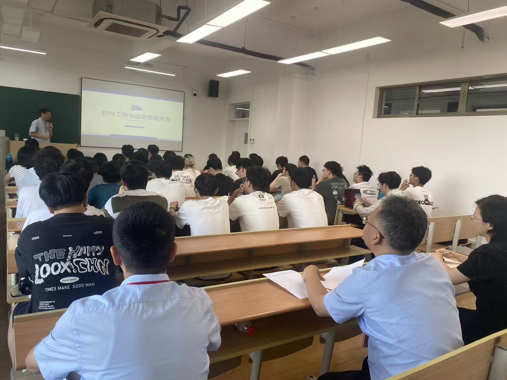 9月15日,新学期开课首日,副董事长郭玉海深入公司2022级信息与计算科学专业员工课堂,与师生共上“开学第一课”。他认真听了陈海波老师讲授的《应用系统开发与软件工程》课程,了解了课程建设情况,并与陈海波老师亲切交流。