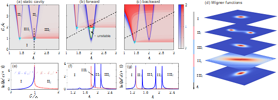 图1: 全光操控的非互易超辐射相变和多临界现象(相图中三角形表示三相点,圆圈表示多临界点)