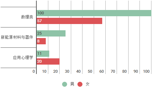 在男女比例方面,依然延续了以往男多女少的情况,其中男生有136人,占比61.5%,女生85人,占比38.5。在数理类、新能源材料与器件和应用心理学三个专业(类)中,也是男生也比女生多,其中最多的是数理类。