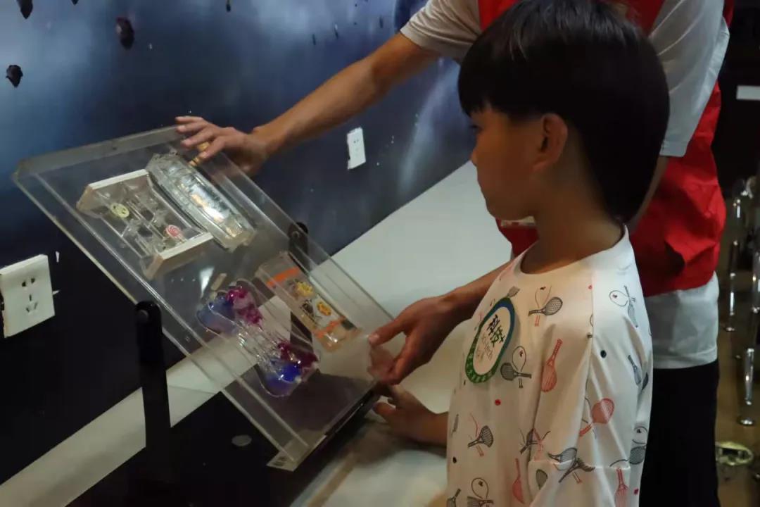 接下去就是小朋友们的实验室闯关之旅。实验室里的仪器对他们来说,既神奇又充满魅力。志愿者们会在八个区域为小朋友们讲解不同仪器的原理及操作方法并进行现场展示。每个区域的讲演结束后,小朋友们的闯关图上都能获得负责该区域志愿者的“认证”。