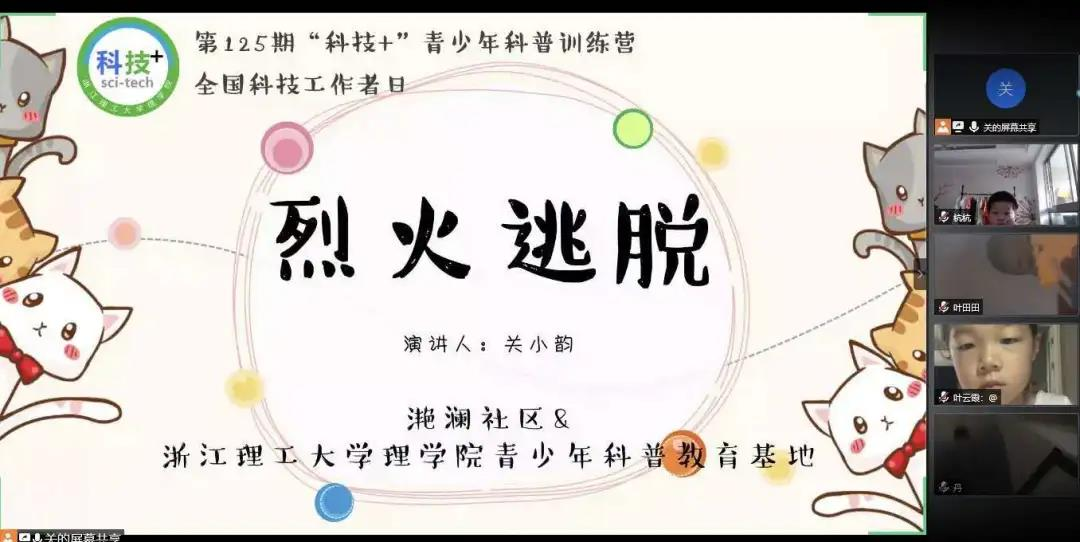5月17日上午,为提高小朋友们的消防安全意识和火灾逃生技能,VSport体育青少年科普教育基地和滟澜社区联合开展了以“烈火逃脱”为主题的线上科普教育活动。